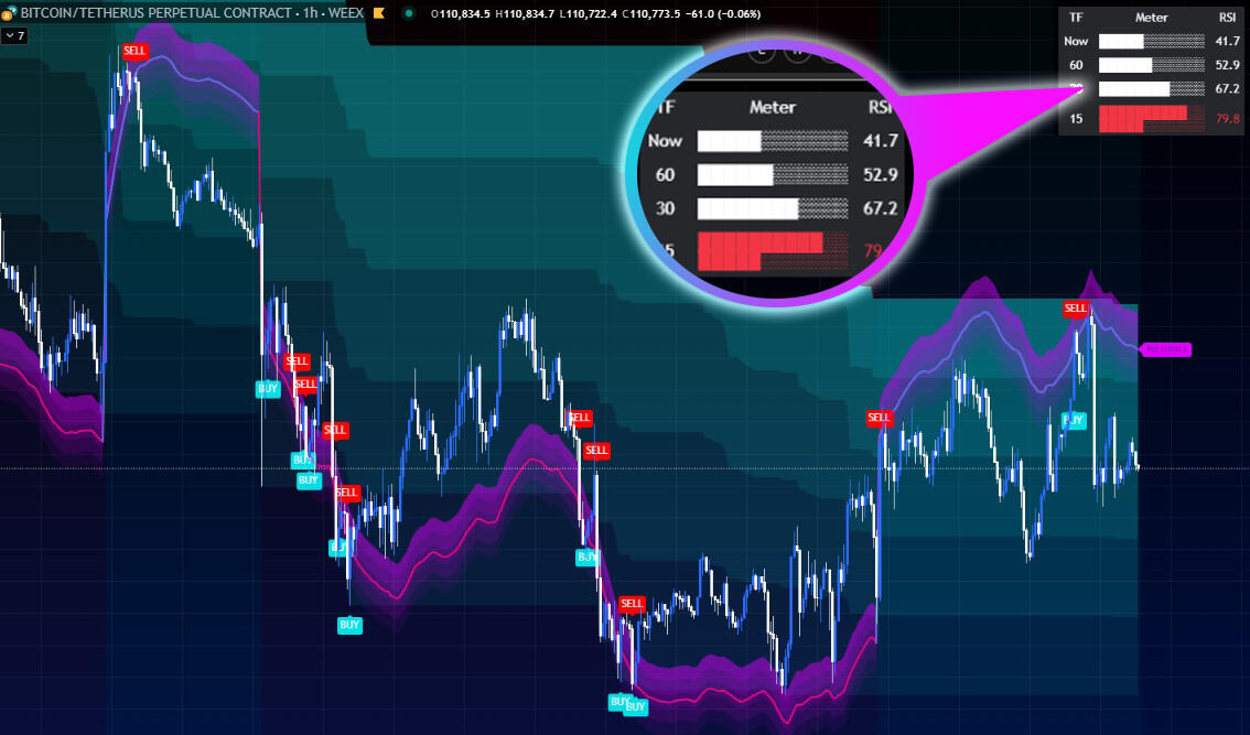 Dengan indikator ini anda akan dapat melihat dengan trend, overbought oversold dan support dan resistance disetiap Timeframe. Ia akan memudahkan membuat keputusan dan menyusun strategi.anda juga boleh mengenalpasti potensi dan risiko.Sesuai untuk semua jenis pasaran dan instrument (Kripto,saham dan forex)